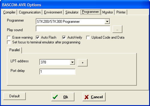 Das Übertragen eines Binärfiles auf den Microcontroller erfolgt über den ISP-Anschluss (einige ausgewählte Pins des Port B). Diese Anschüsse werden an einem ISP-Stecker zusammengefasst.