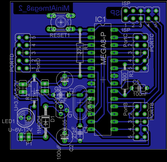 Mini_Atmega8 auf einer geätzten Platine