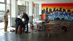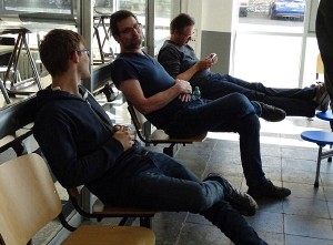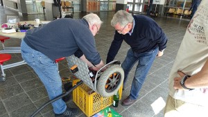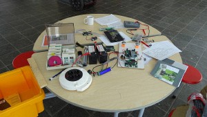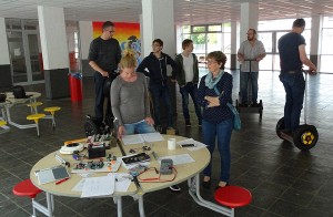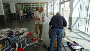 In der Pausenhalle fanden wir ausreichend Platz zum Testen, Fachsimpeln und Reparieren.